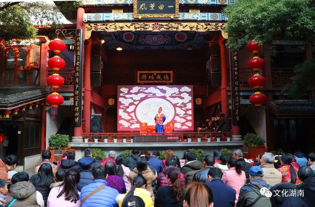 火宫殿古戏台上的传统戏曲表演吸引了不少市民前来观看